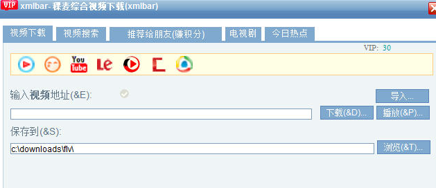 同时还支持,优酷高清视频下载,支持土豆豆单列表下载,甚至可以通过Xmlbar提供的内部代理直接下载搜索和播放视频,甚至可以直接下载CNTV/tv.sohu/ahtv等网站中采用RTMP/RTMPE/MMS/RTSP协议播放的视频。