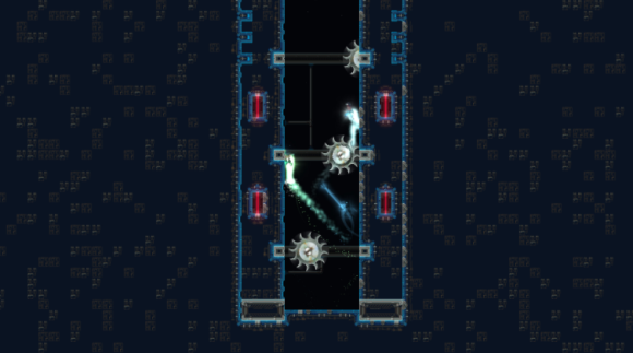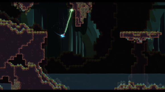 通过冲刺,二段跳和钩爪能力,突破重重困难到达终点。玩家释放勾爪抓住墙壁,通过摆荡后松开勾爪来提升自己的速度,就像我们在现实中荡秋千一样。松开勾爪的时机决定了人物的飞行方向,也就是朝着摆荡圆周运动的切线方向,这一点是完全遵循最基本的物理规律的,而游戏中各种复杂的地形决定了玩家需要精准控制好释放勾爪的时机,使得人物能够避开致命的尖刺或旋转的电锯。