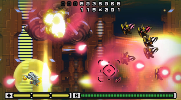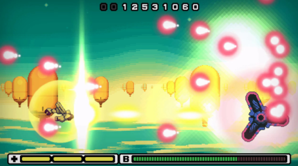通过尽可能靠近敌人的火力飞行并吸收他们的能量来快速增加你的 B-Meter 和火力。你飞得越近,你获得的能量就越多!