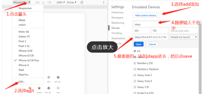 2、浏览器的 User-Agent 必须包含 jdapp,设置含有jdapp的user-agent,设置完成save后记得选择对应的user-agent