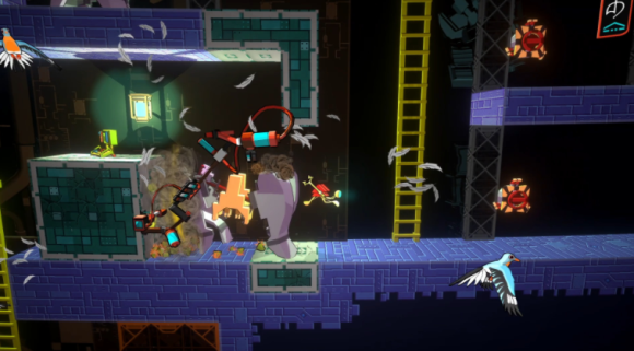 用你的机械臂,你可以扔人,用桌子挡子弹,从灯上摆动,把扫帚砸向敌人,吞噬任何没有被钉死的东西。当你在机枪炮塔和燃烧的家具上争先恐后,抓住一切你能活下去的东西。