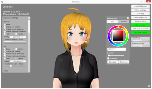VSeeFace(虚拟偶像面部捕捉工具)通过动作捕捉和人脸的表情捕捉,将捕捉的数据传递到虚拟模型上,驱动模型的骨骼和表情,进而实现虚拟的人物实时互动的效果。用户可以将自己的虚拟画面与广大网友一起分享,提供了强大的面部捕捉技术,能够智能识别用户的每一个表情,达到完美同步。完全可以免费使用,类似于Luppet、3tene、Wakaru等软件的功能,需要的网友快来体验!