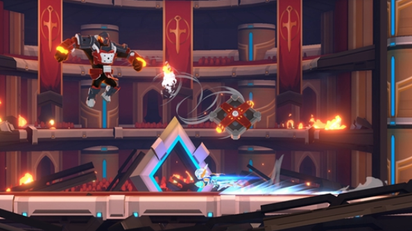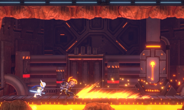2、扮演未来机器人骑士精英,在丰富的关卡中一路杀敌,以战胜六名地方英雄为目标;