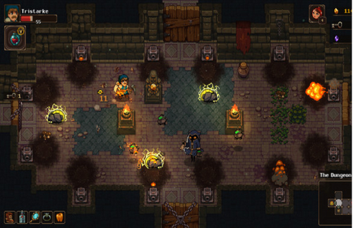 这层会带玩家熟悉一些基本操作:跳跃、近/远程攻击、使用炸弹、挖金矿(爱上偷偷怪)