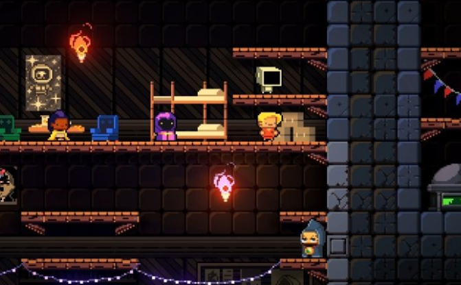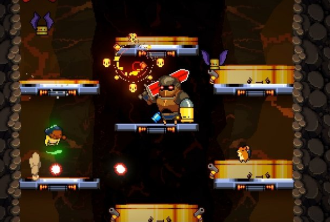 《逃出地牢》是一部小规格、街机式作品,衍生于前作《挺进地牢》,内容则紧密延续前作中闯入地牢的探险者们的征程,不断向反方向“爬升”,挺过一程又一程愈发危险的电梯和一波又一波难缠的敌人。