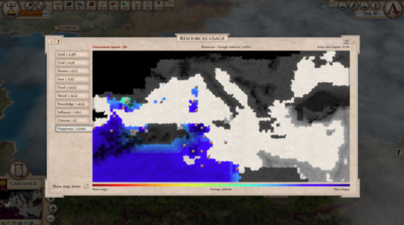 通过管理内部政治和发展经济来统治你的帝国。建立贸易路线以获取财富,确保公民的忠诚度,管理人口统计,技术研究,内部改革,法律......您可以使用的工具是无穷无尽的,并且彼此无缝集成。公民对当前的情况作出反应,当他们不开心时,他们可以搬到其他地方。