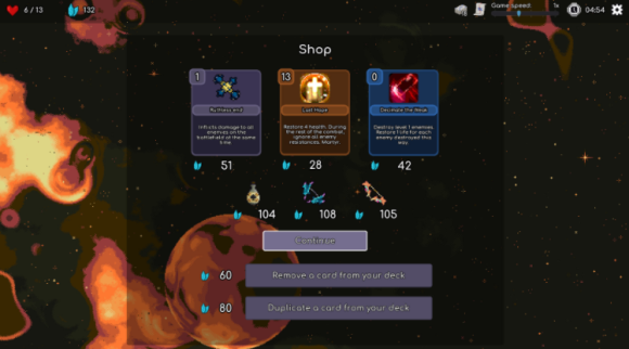ROGUELIKE的精华,每场游戏都是不同的!通过不断变化的布局和自动生成的地图战斗。选择更危险或者更安全的道路,建立不同的卡牌组合,在不同的环境中战斗,并获得不同的遗物,同时保持新鲜的体验感。