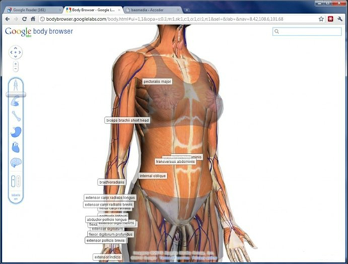 谷歌人体浏览器免费版的显示方式是非常简单而且直接的,直接去设置项里面找就可以了,对于医学行业的从业者来说这是相当不错的软件,最为直观和清楚看到每一个器官的变化和样式,在导入医学资料之后,还可以观察不同疾病下的3d实况,谷歌人体浏览器(google body browser)是由谷歌公司开发,可以对人体模型进行3D浏览的一款软件。使用本软件进行网络访问的时候,便可以获得一个人体解剖学3D模型,还可以放大、缩小、旋转甚至搜索,使用兼容浏览器访问人体浏览器的主页时,便会看到。