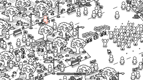 泡泡的人游戏是全程用抽象图案讲述故事,即使bgm很舒缓,但有时候找不到物件都恨不得开放大镜模式,毕竟实在是太小惹,近视眼模糊模糊模糊。