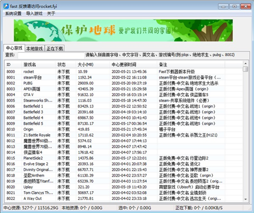 fast火箭下载器免费版深受众多游戏玩家的喜欢,将数百个主机游戏整合在一起,并且数量还在不断增加,你熟悉的魔兽、apex英雄、泰坦陨落等等游戏都可以在这里进行高速的下载,告别龟速体验。免费的游戏下载软件,整合steam游戏平台热门游戏以及部分稀有游戏,提供高达5TB的热门游戏资源。 软件使用P2P下载模式,界面清爽简介,操作简便。绿色无广告污染。