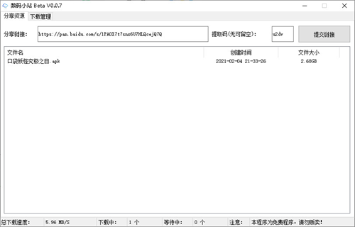 数码小站网盘解析工具正式版是超给力的网盘下载软件,通过易语言编写而成,体积极小、操作容易、一看就会,能够实现满速的网盘下载,不用账号登录,只需要将网盘的链接和提取码放入即可。免费的百度网盘不限速下载工具,可以将度盘资源的分享链接满速下载。这个工具原理就是通过百度云链接解析接口编译成简易图形界面,然后利用内置的Aria2多线程下载资源。