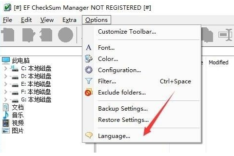 2、打开EF CheckSum Manager官方版后,选择Options-》Language
