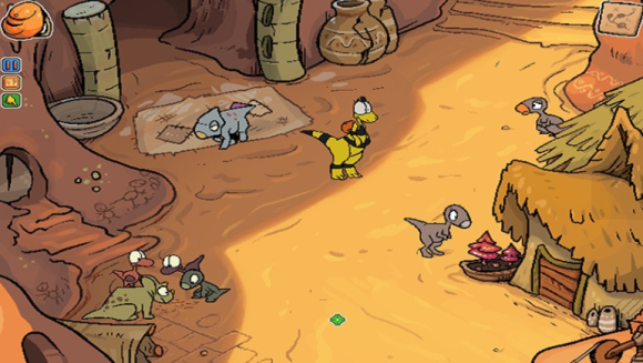 以90年代的冒险游戏和教育娱乐游戏为灵感,是一款全是卡通恐龙的2D点击式游戏。它的特色是漫画式的艺术风格、逐帧动画和可解锁的好东西,如概念艺术和小游戏。当你遇到史前生物时,游戏中的百科全书会充满内容,让你可以阅读更多关于它们的信息。