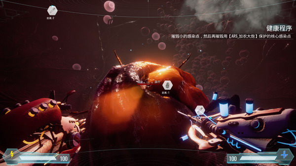 玩家可以使用两种武器:一种能量炮以及一个药物喷雾器;此外,小机器人还可以使用抓钩进行快速移动、甚至更快的逃跑,当然了,所有的东西都能升级。本作还有其他的功能,包括技能树、各具特色的补充物、治愈感染区域以及与病人体内产生的极端环境进行互动。