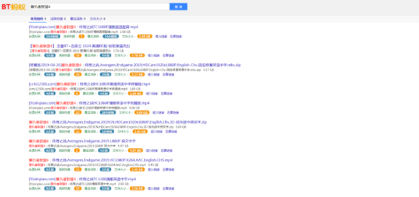 3、点击“搜索”按钮就可以马上查到所有和“复仇者联盟4”有关的影片资源。