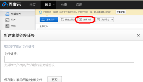 5、我们可以将磁力链接地址复制粘贴到百度网盘,然后进行离线下载。