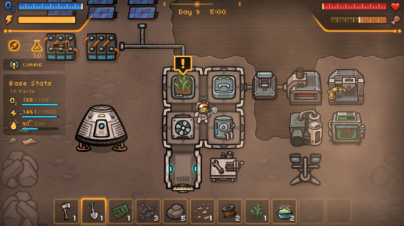 作为生存类游戏中堪称轻松的难度。尽管游戏体积不大,但是内容还算丰富,采集、建造、升级科技等一应俱全。由于是科幻背景的游戏,喵星人在外出时必须呆在宇航服内,氧气会随时间而消耗。