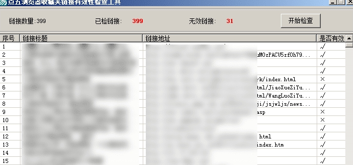 点五浏览器收藏夹链接有效性检查工具是一款收藏链接有效性检查助手,批量化的查找和删除重复的收藏夹网址,让你的收藏夹焕然一新,如果你多年来在网络上游荡,收藏夹里链接多的不得了,我们可以批量检测网址的有效性,能不能打开等问题!今天刚好用到某个收藏夹的链接,竟然点不开了,为快速验证我收藏夹里面的所有链接,这个工具诞生了。