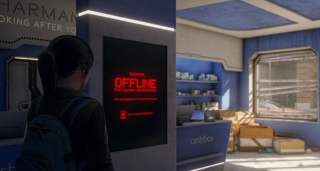 游戏刚开始的BGM有种空灵未来的感觉,配音也比较不错,不过剧情或者对话时不能快速跳过,比如查看一个物品,一般游戏都会设定快捷键可以快速跳过显示,本作只能等说明读完,或者播放完介绍,并且跑步动作也让人觉得有些缓慢。第三人称的视角,采用了靠近然后选择的方式,一般有查看,对话,使用已经找到的物品,以及拾取等等动作交互,方便玩家探索当前场景寻找物品,设计了一定的解谜环节,比如刚开始药店找药需要找到门卡,缺失的电池和电线解除安全锁,然后找到钥匙然后将三角形的数字移动正确得出中间数字的和才能打开保险箱。除此之外还设定了潜行躲避,按键交互等玩法。对于没有翻译在一定程度上还是影响体验的,游戏中所有的录音目前还是俄文,我卡在了打开员工储物柜输入工厂密码那里(原始密码是啥啊!头秃!),还在继续搜索中。