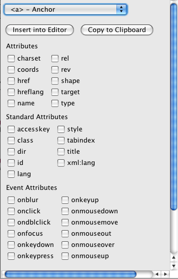 用于选择 HTML 标记及其属性与侦听器的 HTML 标记生成器