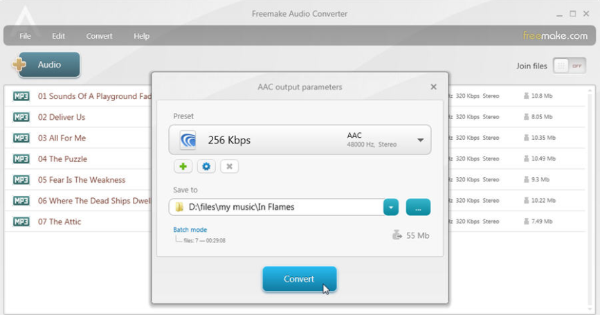 批量将多个轨道编码为相同格式,例如,将WMA 编码为MP3或将FLAC编码为MP3,设置音乐实用程序以将音频文件转换为一个媒体文件或单独转换。