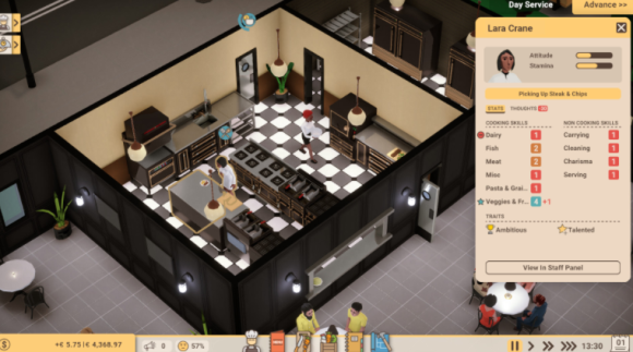 厨师长模拟器从程序化生成的员工池中进行挑选。你需要考虑每位员工的性格和技能等级的独特组合,以及这些因素员工的工作效率、关系和顾客互动的影响。是不是合适?还是说会被证明是弊大于利?