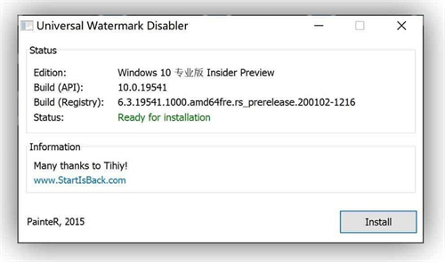 点击Install按钮,稍等一会儿它就可以帮你去除版本号水印了,完成后显示绿色