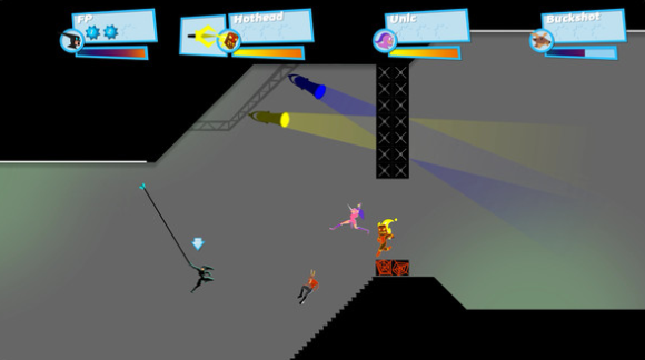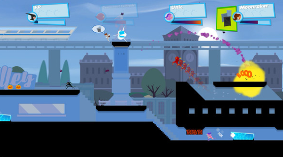 这是一款竞技性非常的强的跑酷游戏,相反剧情倒是不那么重要了。游戏可以单人与电脑竞技或者多人联机。在单人模式下有多达20多个关卡可供挑战,虽然可以添加机器人,但玩起来仍旧感觉一般。这款游戏的真正乐趣在于朋友一起玩,凑齐四个伙伴,发射导弹、钩爪,坑坑队友,玩起来真是其乐无穷。同时,游戏中自带地图编辑器,可以自己做地图玩。