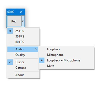 选项从扬声器(环回)、麦克风、扬声器和麦克风的混合以及静音捕获音频。