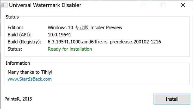 3、点击Install按钮,稍等一会儿它就可以帮你去除版本号水印了,完成后显示绿色;