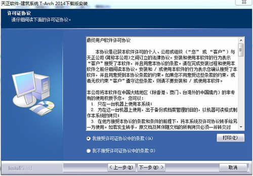 在本站下载天正建筑2014安装包,点击主程序进行,安装接受协议,进入下一步
