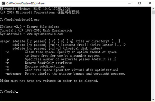 注意上面的sdelete64也可能是sdelete,请根据你的操作系统 32、64 位而定