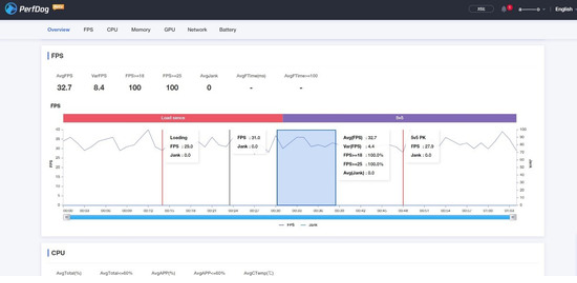轻松获取FPS、Jank、FTime、CPU、GPU、内存、电池、网络、CTemp等性能设置,设备对CPU性能的影响小于1%,保证性能数据准确无误。