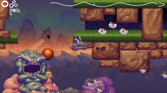 在经典的 2D 横向卷轴动作中,在返回地球的途中跳跃并冲过龙的背脊。