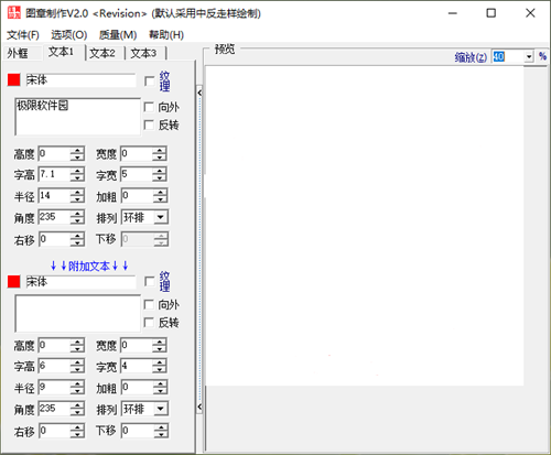 sedwen免费版操作十分简单,所有的功能都比较直观,支持多种类型的图章制作,用户可以自由地对文本、边框、边线等参数进行设置,使用过程是完全免费的。简单易用的图章制作软件。支持圆章、椭圆章、方章、菱形章、三角章等外框,可自定义边框、图符、中心线、文本等细节。此外,软件还包含了翻转、透明、灰度、浮雕、反相、高斯模糊、任意角度旋转等多种特效。