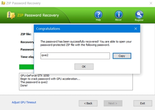 6、单击下一步按钮开始恢复过程。密码恢复后,程序将清楚地通知您结果。