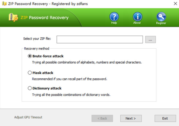 Top ZIP Password Recovery官方版使用描述: