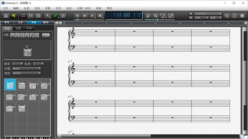 overture5最新版具有好用、简单等特性,即使是新手小白也能轻松入门,享受便捷化的操作,对于音乐爱好者来说,能够轻松地实现打谱,五线谱、六线谱等统统不在话下。实用且专业的五线谱打谱软件,无论是在功能方面还是在软件的用户界面都得到的全面优化,包括拥有独立的窗口界面,让所有的编辑工具和符号调色板都变得触手可及;增加了全触屏操作,可以让你以从未想象过的方式工作,滑动你的乐谱,点击按钮,拖动控制滑块,快速翻页,放大和退出,所有操作都可以通过触摸进行,是你打谱最好的帮手。