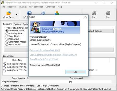 Microsoft Office密码恢复功能使您能够使用三种强大的选项来恢复Office文档密码:暴力攻击,带有掩码攻击和字典攻击的蛮力攻击。此模式支持Office 97-2016。