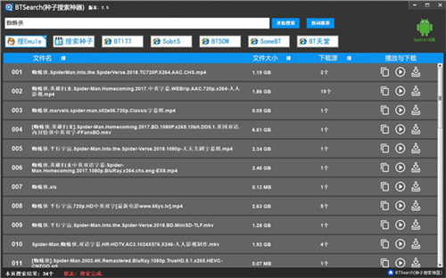 1、 支持8个BT磁力连接搜索引擎,10个emule服务器,可以秒搜到几百个活跃的资源,较强大的P2P搜索引擎。