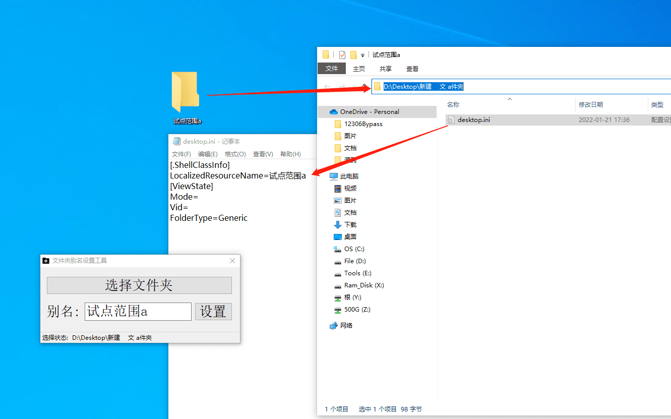以前都是手动在文件夹里面,放一个desktop.ini文件来定义别名。纯手动着实不方便。