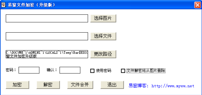《易窗文件加密绿色版》是一款很好用的电脑文件加密软件,可以帮助用户加密任何重要的文件,这样就可以使文件更安全不易外泄了,软件操作方法也很简单,可将任意文件加密到图片,图片没有任何异样,加密之前可以设置加密密码,输入加密密码后,密码不正确无法解密,需要解密选择图片,选择解密出来的文件路径,如果不选择“文件解密将从图片删除”这个选项,可以无限将文件解密出来文件加密后可以将原文件删除。