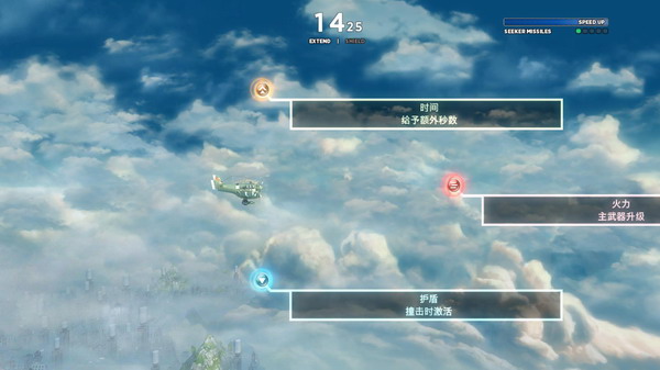 随着单机剧情的逐一解开新游戏模式以及道具,玩家便能透过Arcade模式来挑战自己的成绩,而你也能选择最高难度的疯狂模式(Insane)进行游戏,而疯狂模式除了会基本配给玩家的生存时间外,敌人所射出的子弹也是比平常多数倍,更讨厌的是击爆机体后它们还会喷出扩散型子弹,笔者差不多撑个30秒就挂彩了。除此之外,游戏也提供直接与魔王对战的Boss Training模式,透过此模式让你熟悉魔王的攻击模式,并以这样日复一日的磨练来超越自己的战斗能力。