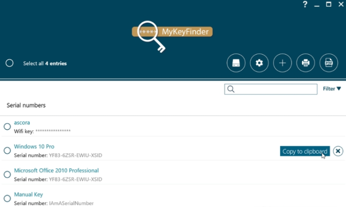 需要打印产品密钥?可以将密钥导出为PDF,进行打印,甚至将其复制到剪贴板。