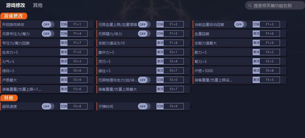 艾尔登法环二十四项修改器键位功能