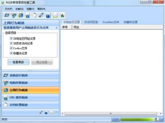 《RG涉密信息自检查工具官方版》是一款安全自检工具,RG涉密信息自检查工具适用于单位内部对计算机设备的保密情况,以及对计算机违规使用情况的自查,软件功能强大,主要包括系统运行痕迹、电脑外联痕迹、上网行为痕迹、URL缓存痕迹以及文档处理痕迹等,系统运行痕迹主要是查看电脑使用和程序运行情况,可以获准最近的电脑开关机时间以及运行过的程序,电脑外联痕迹能查看电脑远程登录、网络连接情况,可以获取网上邻居访问痕迹、ADSL拨号连接情况以及无线网络连接情况。