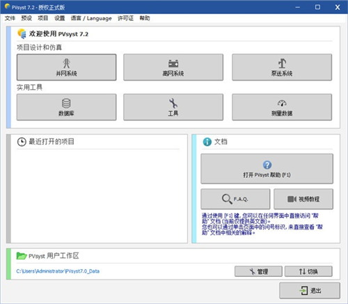 pvsyst7.2中文版软件具有相当强大的功能,是光伏行业人员必备的软件,能够进行光伏发电系统的仿真,通过多种方面的数据参数为用户提供参考建议,是工程设计、研究教育等方面应用比较广泛的软件。用途广泛的光伏系统仿真模拟软件,不仅适用于各种光伏电网行业,还能够极大程度的满足建筑工程行业的使用需求,深受光伏专业人群的诸多喜爱。同时直接为用户集成了工程设计工具、数据库设备管理、光伏发电系统仿真初步设计工具等功能,从而可以轻轻松松的帮助用户根据多种方面轻松计算出太阳能电池之发电总量,有效提高工作效率,节省大把时间。