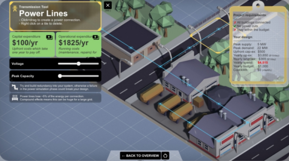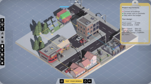 扮演工程师的角色,为绿色未来而努力。您的目标是为城镇建立自给自足的电网,并减少对化石燃料的依赖。评估当地的独特需求并设计解决方案,充分利用您周围的元素。