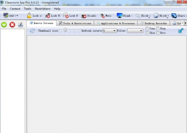 《Classroom Spy Professional破解版》是一款非常好用的电脑桌面远程控制软件,与一般的同类程序不同的是,它可以用来进行电脑教学活动,不仅可以实时对学生的电脑屏幕进行监控管理,还可以帮助学生更好的完成学习任务;此外,软件还强大的屏幕共享同步功能,你可以将你电脑屏幕上的课件内容直接分享同步教室中每一台电脑中,让学生们可以更好的进行学习!此外,它还可以作为电脑的全天候监视器,可以实时对你电脑上所有的获得进行监控,还可以自动生成监视日志,有需要的用户快来下载体验吧。