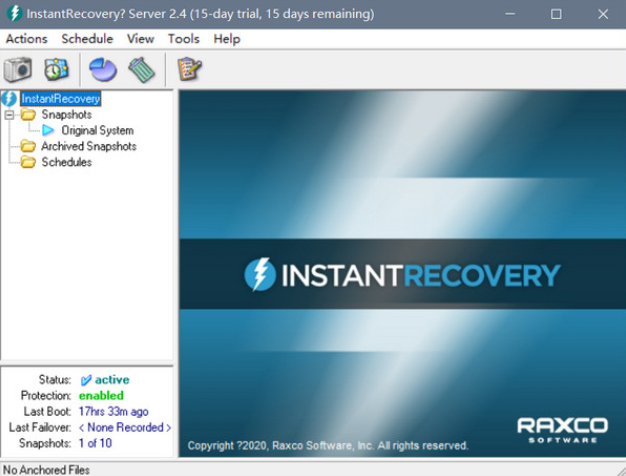 《InstantRecovery免费版》是一款电脑数据安全还原软件,可以有效的保护电脑被勒索软件或者恶意软件攻击时将电脑进行还原,软件拥有独特的系统快照功能,能在硬盘被锁死的情况下进行恢复。当你的电脑出现勒索软件和恶意软件攻击时,失败的系统补丁程序或应用程序更新,或任何与软件相关的事件导致系统损坏或无法启动时,那软件会在重新启动后立即将系统还原到其原始操作状态,而且还支持多个快照,使用户能够捕获不同的系统条件,每个快照都是可引导的,并将使系统返回到指定的系统状态。